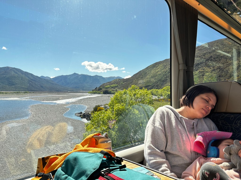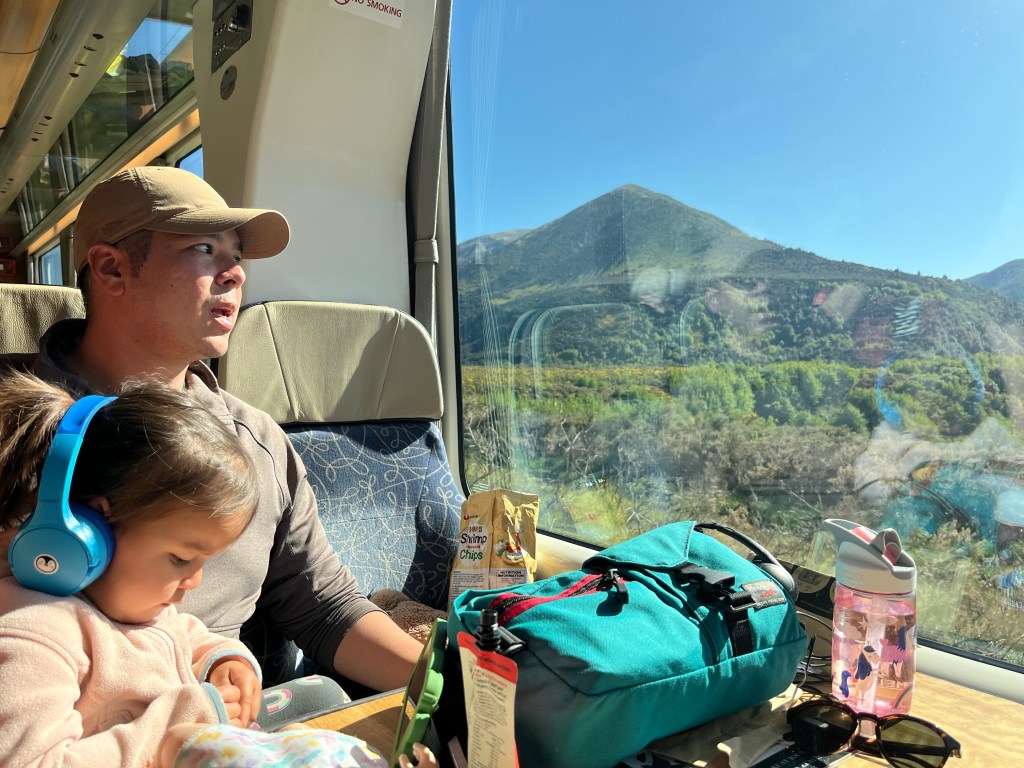 We started in Christchurch and took the scenic Tranzalpine train across the southern island to a small town called Greymouth. As expected the scenery on the 5 hour train was stunning. Even though we missed out on the snow covered mountains and hills because lots of it has melted by now, we had a beautiful clear day with gorgeous green hills, towering mountains, blue-rivers, waterfalls, bridges, and of course sheep. Mara did so great on the train, she’s clearly on track to be a lover of public transit like her parents.
