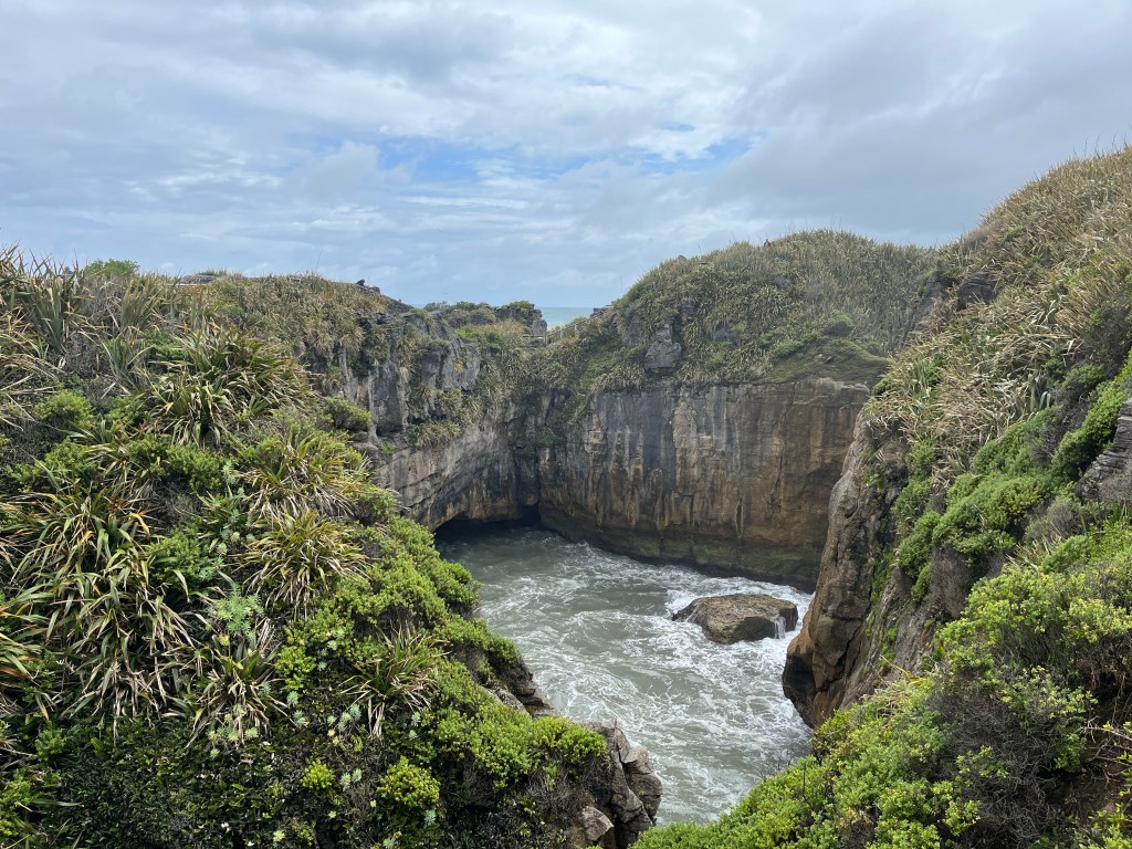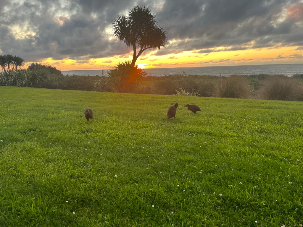 On the West Coast of the South Island we hopped in our rented (hired) 12 seater minibus to continue along on our journey. Our first stop was in Pt Elizabeth for 2 nights at an Airbnb on the water. I feel like it’s getting old at this point to talk about how incredible the views were, but it’s really just amazing. Mara made friends with the weka birds, not a kiwi bird but another NZ flightless bird. They were super friendly and funny, clearly they lived there and we were in their space.