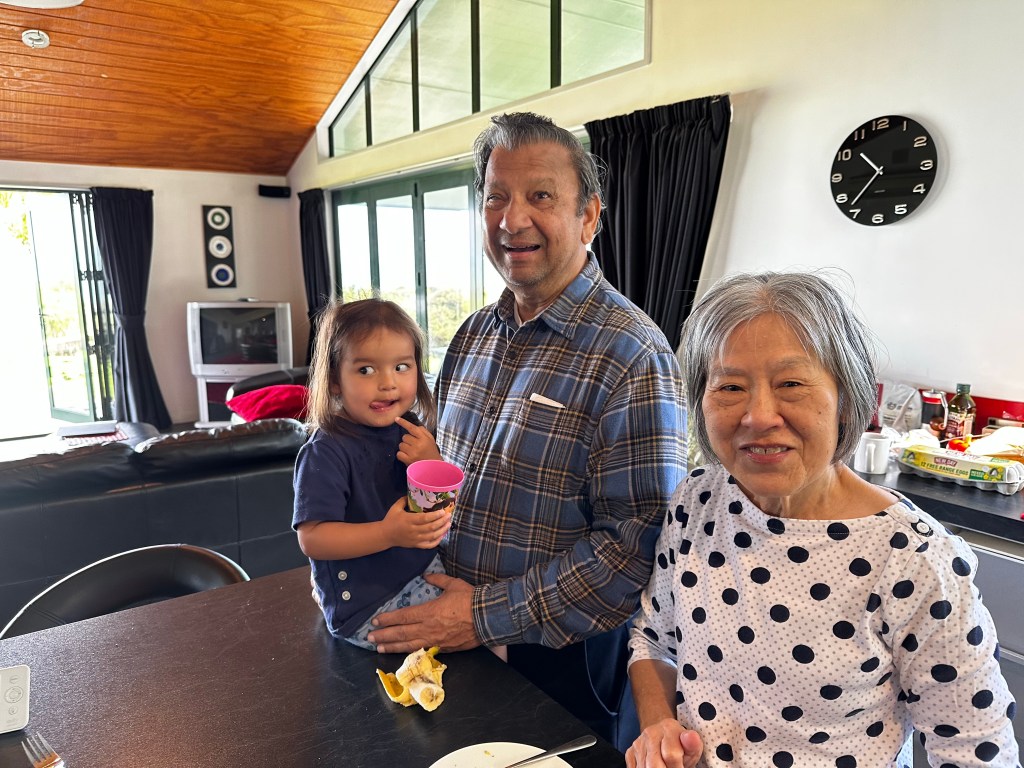 Wylie’s parents and aunt and uncle make the long trips from Virginia and Bangkok to come visit us for two weeks near the end of our stay in New Zealand. We had been talking about their visit for a while so Mara was very excited to see her grandparents. It was the first time she met her grandpa in person.