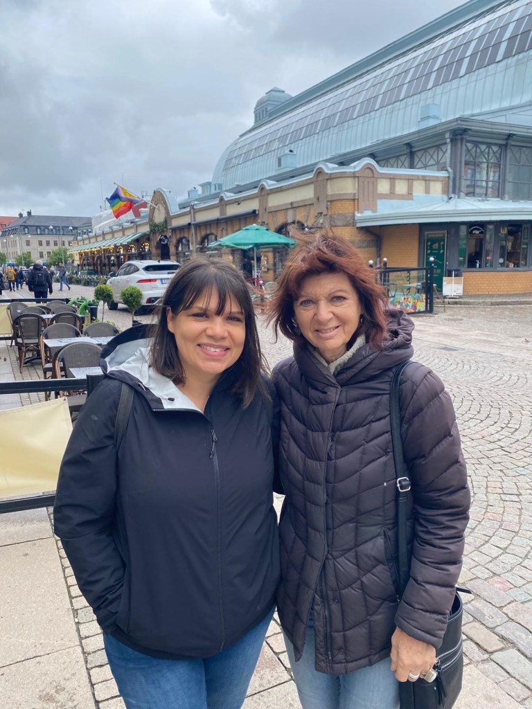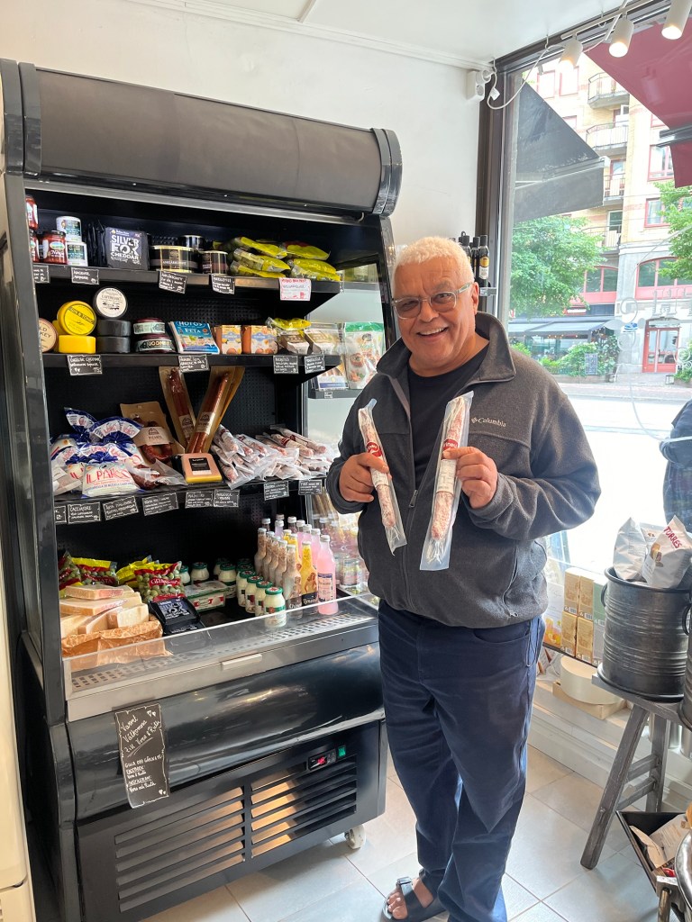 I met my dad and Susan at their hotel the next morning then we took the tram to pick up Mara early from school. We had a low-key afternoon and evening at our place with an apero dinner. Of course we stopped at a nearby cheese shop and my dad made friends with the owner. Both my dad and Susan are small business owners in California – my dad with Coastal Products selling cheese to restaurants and wineries and hosting cheese tastings, and Susan has Rosie Lee Imports, a specialty British tea and gift shop in downtown Ventura. They were both very impressed by the selection of products and friendliness of staff at the small businesses here in Gothenburg.