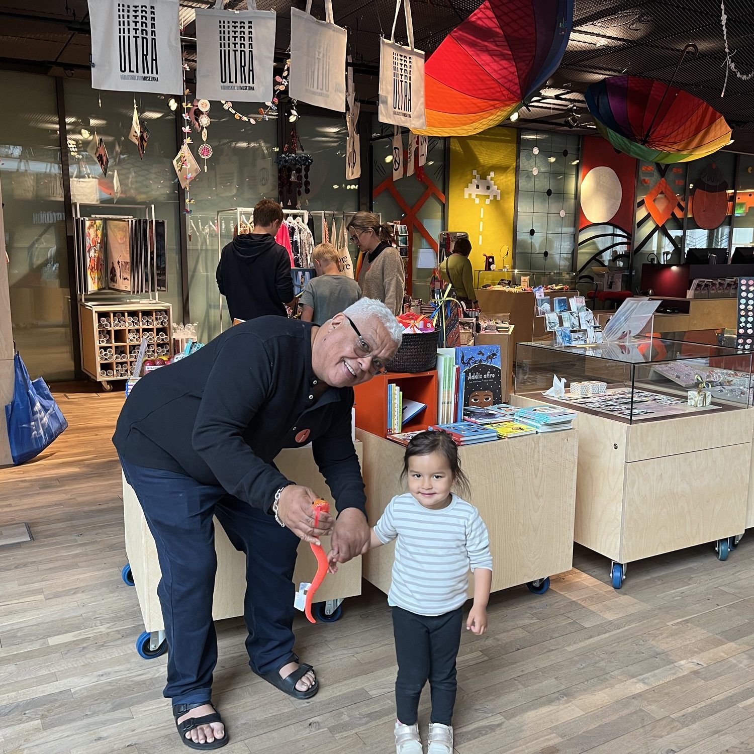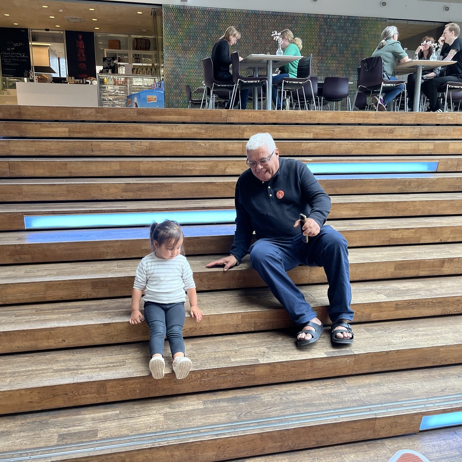 The next day we went (again) to the world culture museum, we’re really regulars here. Mara showed grandpa all of her favorite attractions in the Together exhibit and of course the big amphitheater stairs.