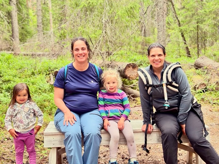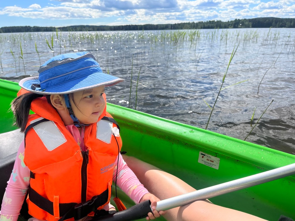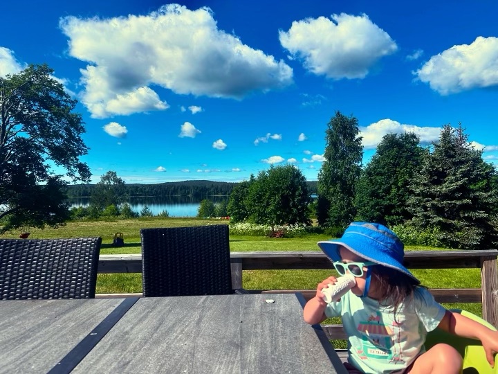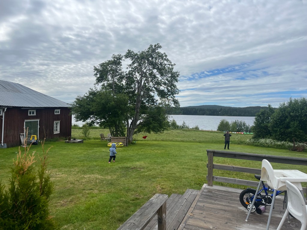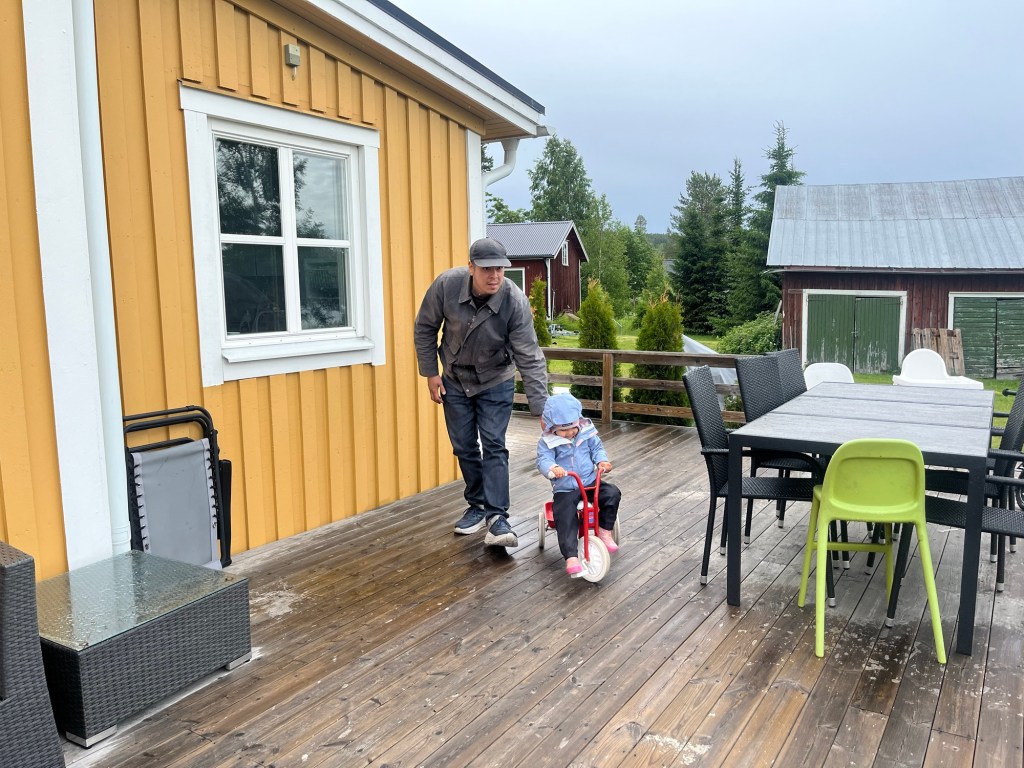 We arrived in Umeå around 7:30am then walked to the central bus station to catch a bus to the airport to pick up our rental car. All of that took less than an hour! At the airport we met up with Wylie’s friend and our host, Marta. She flew in from a work trip at the same time we arrived so we met at the airport and headed to her home. We opted to rent a car seat instead of hauling ours around and we learned that car seats are rear facing in Sweden until around age 4! That was an adventure but we made it work for Mara with lots of help from her iPad.