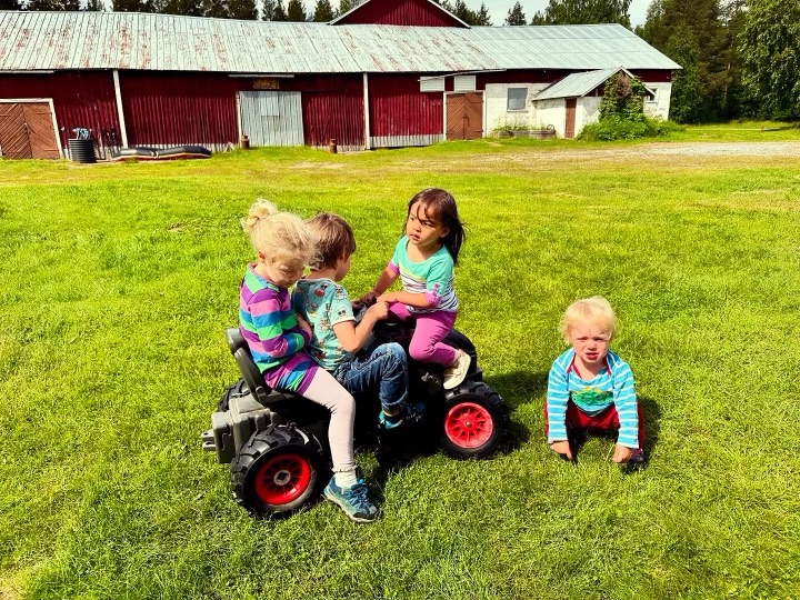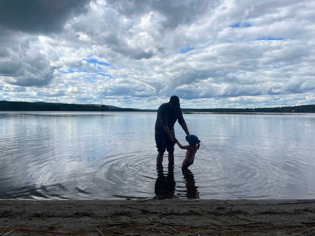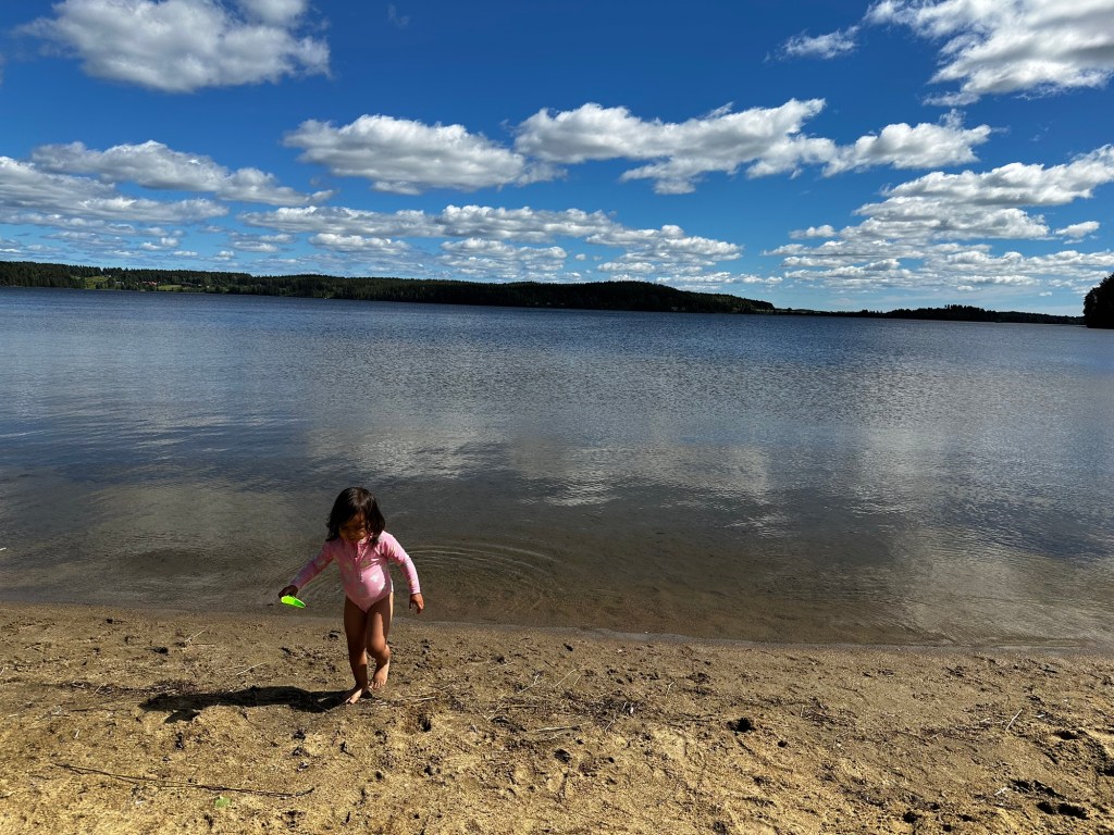 The next day was midsommar’s eve and the day for festivities. It was mostly warm and sunny day except for some wind. We went to a community celebration complete with songs and dances around the maypole. Hudson and Marta prepped a picnic of all the Swedish midsommar classics including herring of many flavored varieties, cheese pie with cream and roe, shrimp salad (mainly mayo), potato salad, etc. It was all… interesting. Definitely a win if mayo is your thing. The herring was a must-try because it’s so ubiquitous with midsommar, but one bite for me was sufficient. The kids had a good time playing on the grounds, in the sand, and of course Mara went straight for the water.