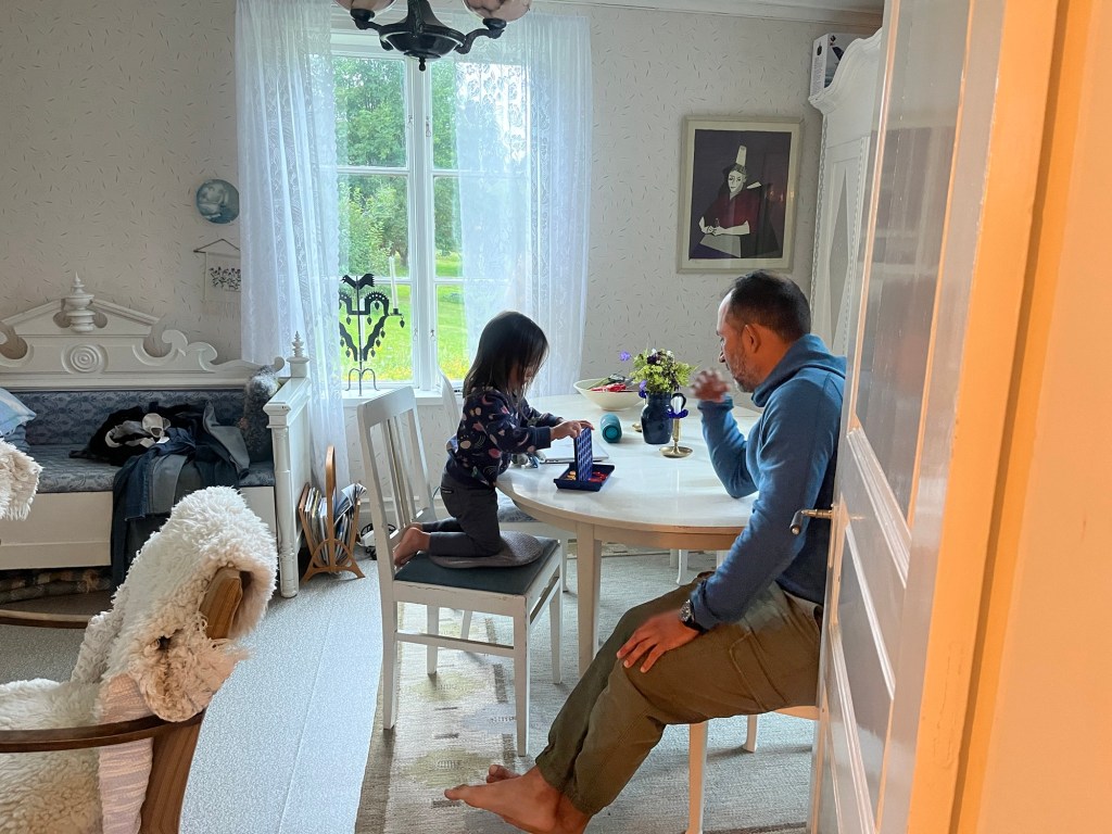 We rented a van and drove up to Härnösand for the reunion/first meeting of the Zinks and a late Fika at Lotta’s parents home. Everyone was so kind, we immediately felt so welcomed! After Fika we caravanned with the Zinks to their home in Nordingrå. Lotta and Eren’s home was amazing, and very similar to the Umeå home we visited with the large house and guest house on the property. It even had a tiny play house that Mara loved! Wylie, Mara, and I got to stay in the fully stocked guest house, while Marie, Israel, and the kids stayed in the big house with the Zinks so the kids could be in constant contact. Emiliano and Elliot, the youngest of the five Zink kids, were in the same class in their international school in Bangkok for four years and are the best of friends. We also met Edith and Nora Zink, who are amazing young women who stole Mara’s heart, she loved being with the big girls. We didn’t get to meet the two oldest Zink girls who are off at college, but I imagine our paths will cross again at some point.