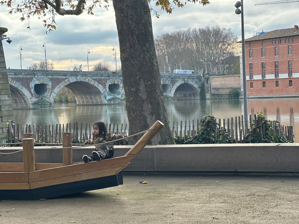 One of our favorite spots is Port de la Daurade for close proximity to home and school, the view, the playground, and terrace bar when the weather is nice – what could be better! We spent many afternoons here in our first few months, with Corinne, with friends we made in town, with friends we met at the bar, or just the three of us. The bar closed for the season once fall rolled in, but the park is still a favorite spot after school and has been a great place to meet and chat with other parents.