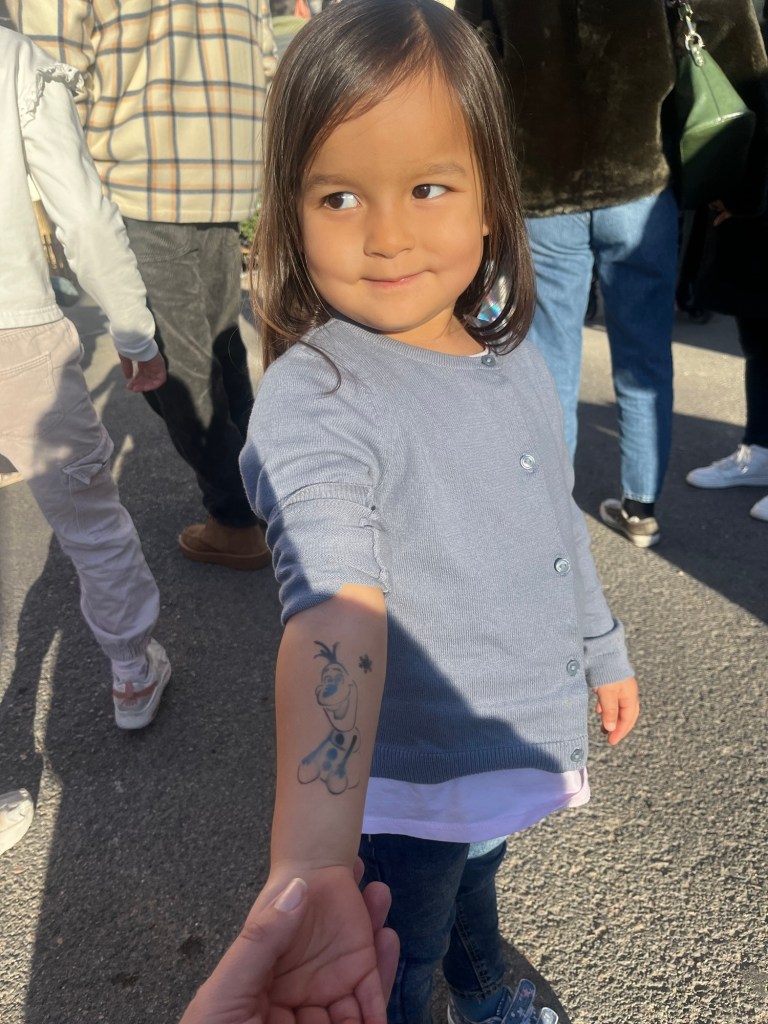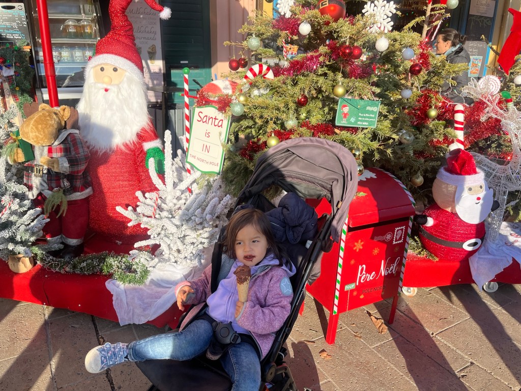 After the market and a Catalan lunch, we made a stop at the cute and tiny Christmas market, which was basically just a collection of attractions for kids that were all free. Plus a stand with vin chaud… obviously. Mara jumped in the bounce house/jolly jump/moon bounce (there’s a big controversy in the Ahmed-Leon household over what those are called), rode the tiny Santa’s sleigh ride, met some lion king characters, and even got an Olaf airbrush tattoo. Wylie got to take some time to walk around the old city while I hung out with Mara, it was great! We ended the day with a stop at an old bridge for some lovely views.