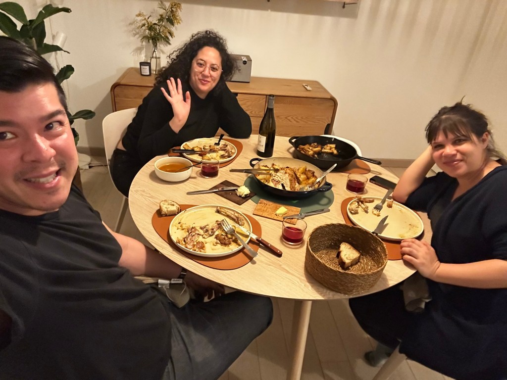 We celebrated Wylie’s 40th birthday on January 12th! We didn’t do anything too big, though 40 would have warranted it, we just had a family day in Toulouse. We took a bike ride up the Garonne river to a park. It was a nice sunny day but quite cold and it was our first leisure family bike ride so it was new for all of us, especially Mara. We didn’t end up staying too long and hurried home to get warmed up. Wylie got to enjoy the afternoon on his own then we put his raclette cooker gift to good use with a raclette dinner at home!